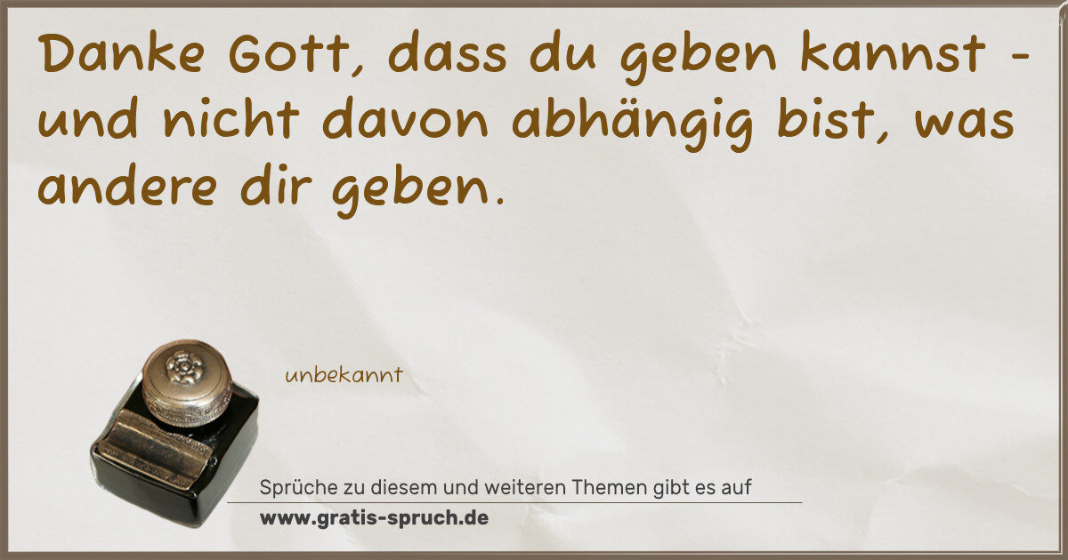 Danke Gott, dass du geben kannst - und nicht davon abhängig bist, was andere dir geben.