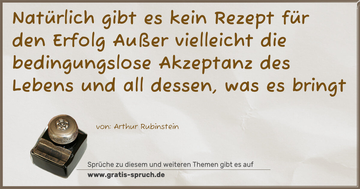 Natürlich gibt es kein Rezept für den Erfolg Außer vielleicht die bedingungslose Akzeptanz des Lebens und all dessen, was es bringt