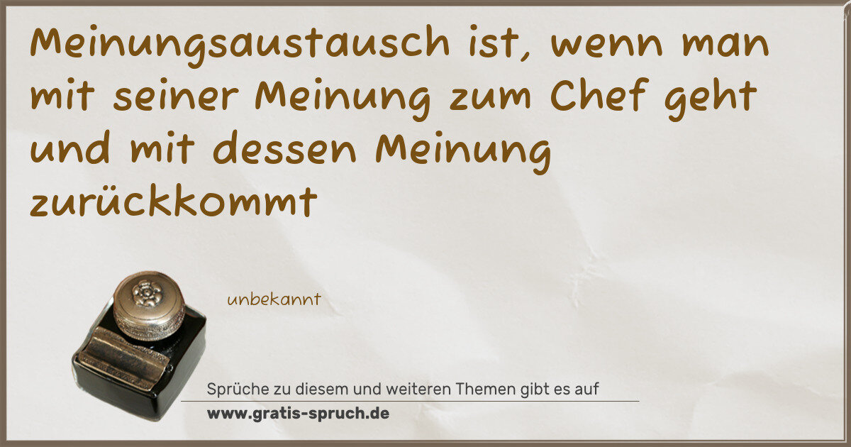 Meinungsaustausch ist, wenn man mit seiner Meinung zum Chef geht und mit dessen Meinung zurückkommt