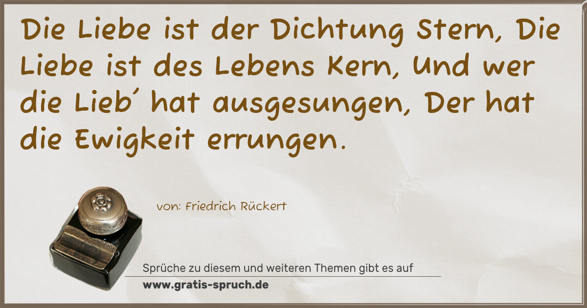 Die Liebe ist der Dichtung Stern, Die Liebe ist des Lebens Kern, Und wer die Lieb' hat ausgesungen, Der hat die Ewigkeit errungen.