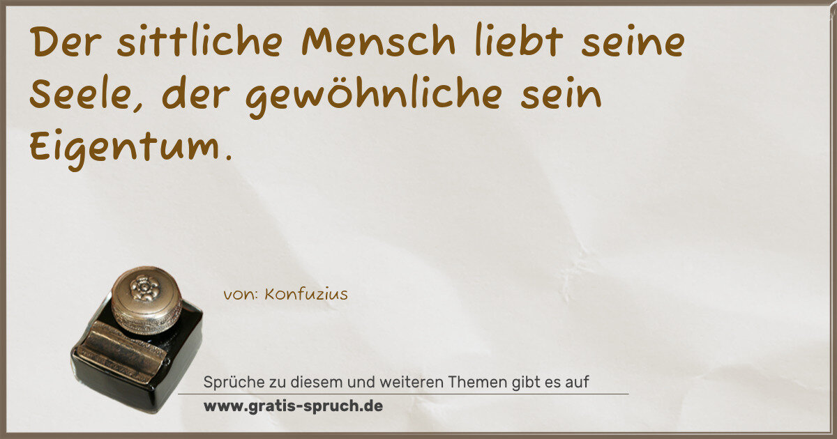 Der sittliche Mensch liebt seine Seele, der gewöhnliche sein Eigentum.