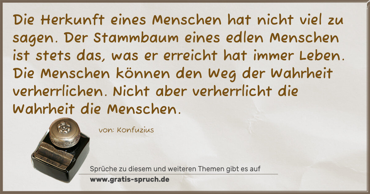 Die Herkunft eines Menschen hat nicht viel zu sagen. Der Stammbaum eines edlen Menschen ist stets das, was er erreicht hat immer Leben. Die Menschen können den Weg der Wahrheit verherrlichen. Nicht aber verherrli …