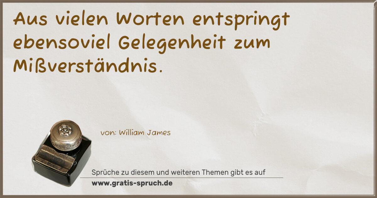 Missverständnis❝Aus vielen Worten entspringt ebensoviel Gelegenheit zum Mißverständnis.— William James✦ 3.8