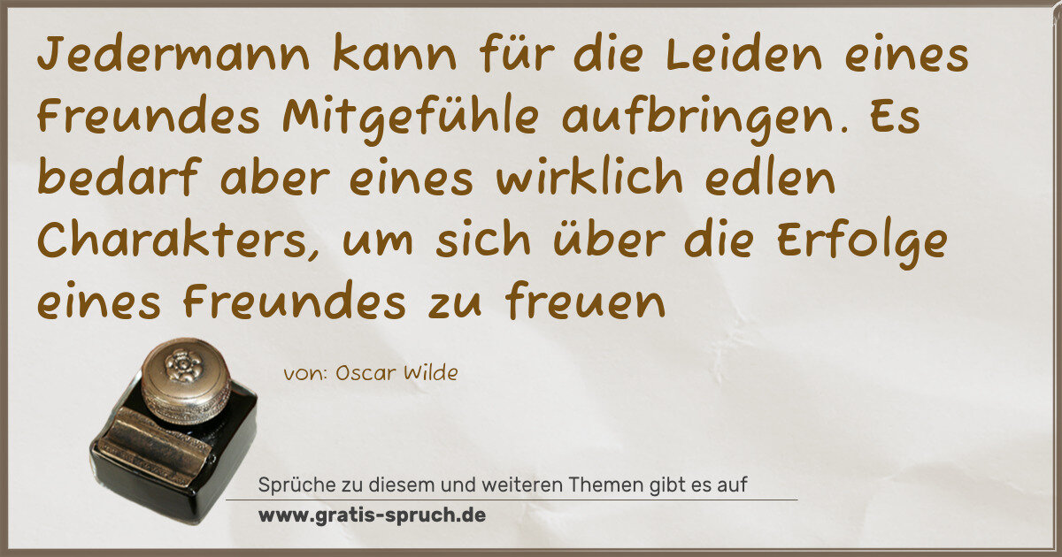 Jedermann kann für die Leiden eines Freundes Mitgefühle aufbringen. Es bedarf aber eines wirklich edlen Charakters, um sich über die Erfolge eines Freundes zu freuen
