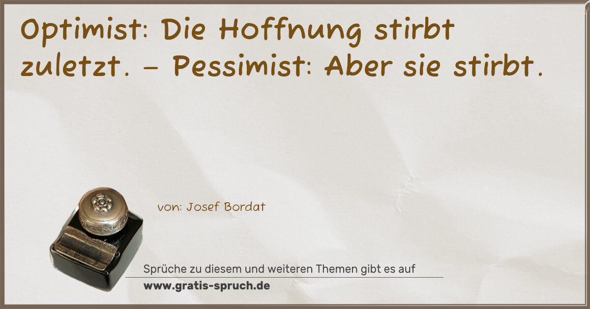 Optimist: Die Hoffnung stirbt zuletzt. – Pessimist: Aber sie stirbt.