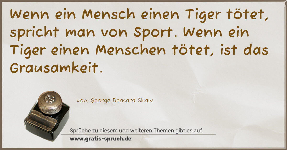 Wenn ein Mensch einen Tiger tötet, spricht man von Sport. Wenn ein Tiger einen Menschen tötet, ist das Grausamkeit.