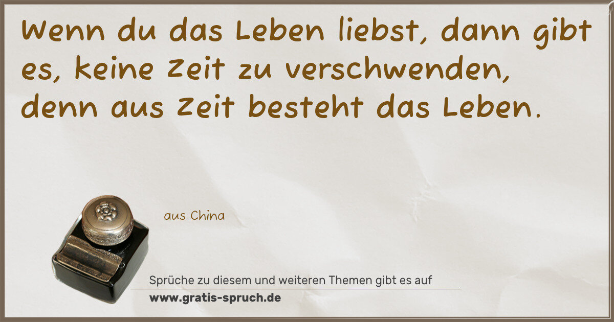 Wenn du das Leben liebst, dann gibt es, keine Zeit zu verschwenden, denn aus Zeit besteht das Leben.