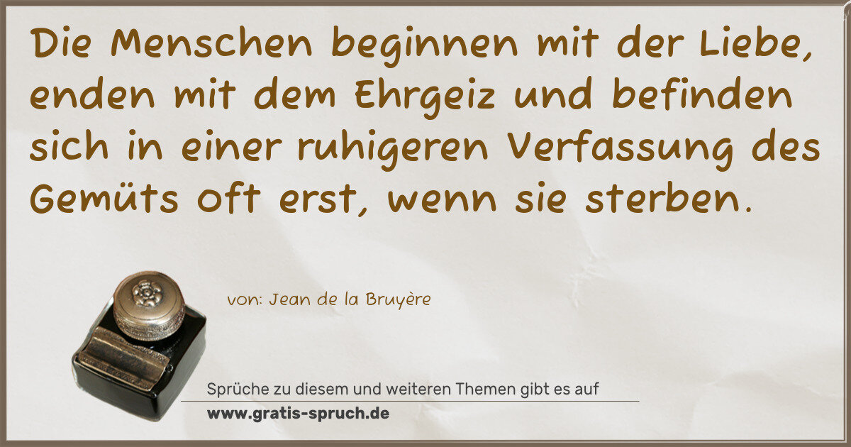 Die Menschen beginnen mit der Liebe, enden mit dem Ehrgeiz und befinden sich in einer ruhigeren Verfassung des Gemüts oft erst, wenn sie sterben.