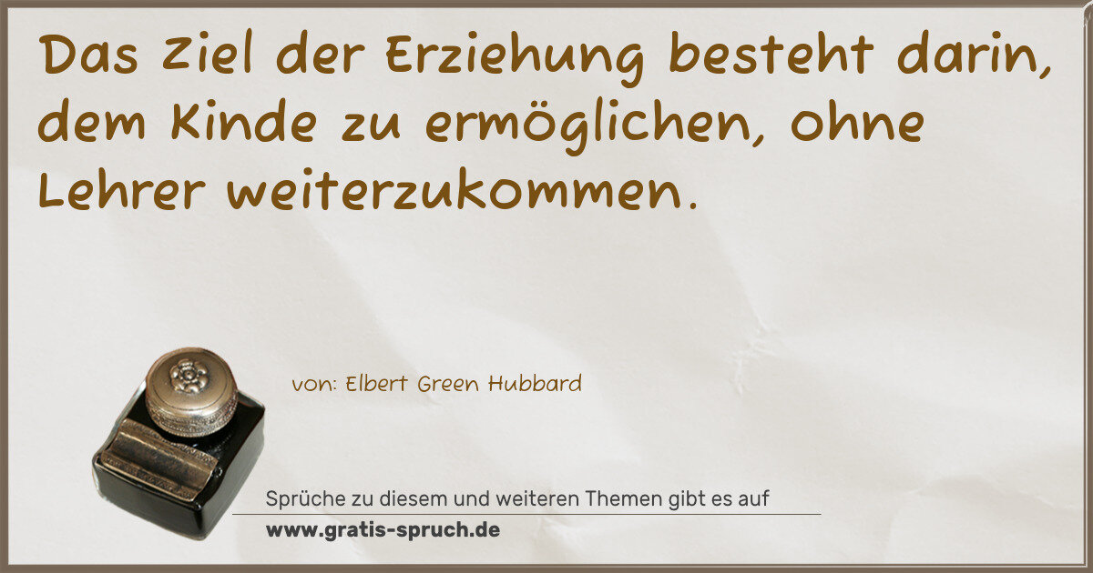Das Ziel der Erziehung besteht darin, dem Kinde zu ermöglichen, ohne Lehrer weiterzukommen.