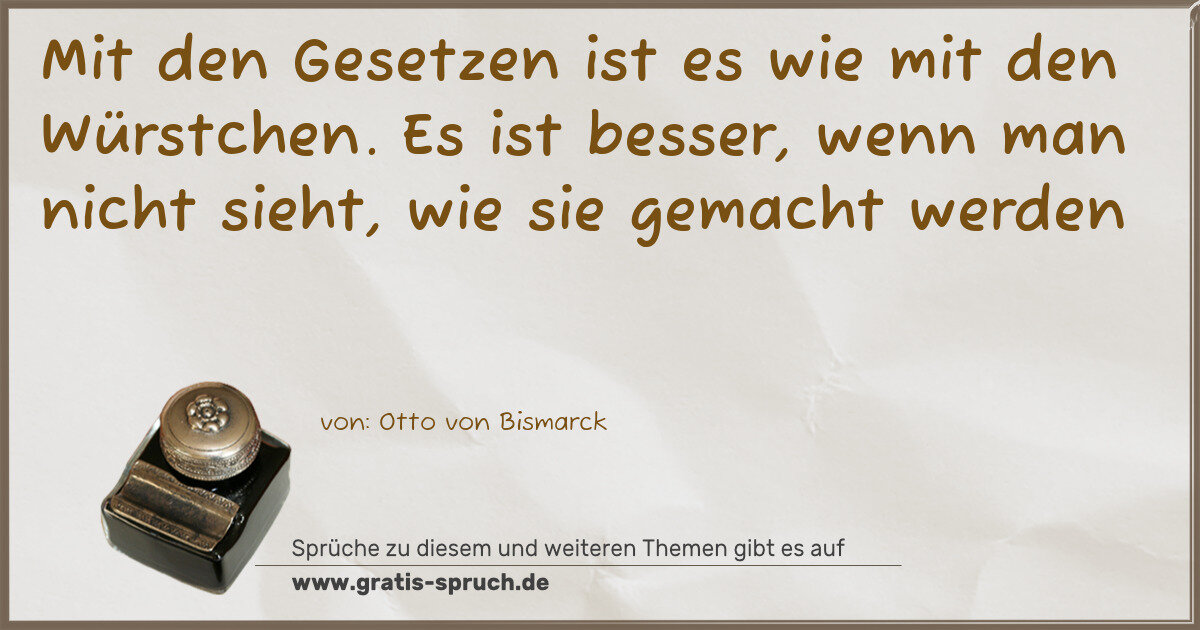 Mit den Gesetzen ist es wie mit den Würstchen. Es ist besser, wenn man nicht sieht, wie sie gemacht werden