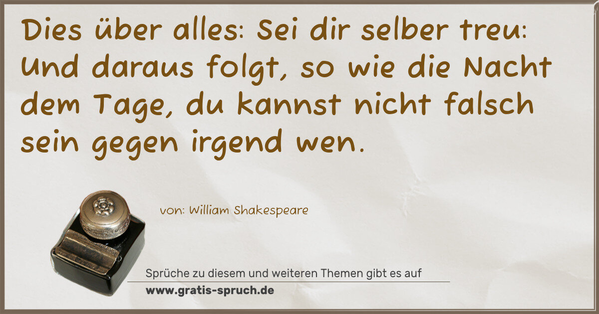Dies über alles: Sei dir selber treu: Und daraus folgt, so wie die Nacht dem Tage, du kannst nicht falsch sein gegen irgend wen.