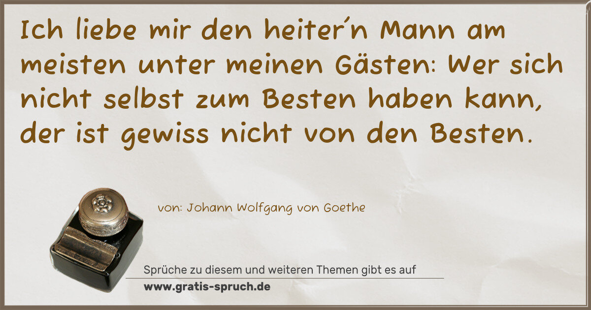 Ich liebe mir den heiter'n Mann am meisten unter meinen Gästen: Wer sich nicht selbst zum Besten haben kann, der ist gewiss nicht von den Besten.