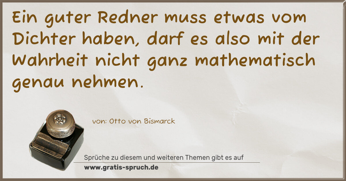 Ein guter Redner muss etwas vom Dichter haben, darf es also mit der Wahrheit nicht ganz mathematisch genau nehmen.