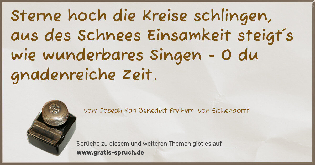 Sterne hoch die Kreise schlingen, aus des Schnees Einsamkeit steigt´s wie wunderbares Singen - O du gnadenreiche Zeit.