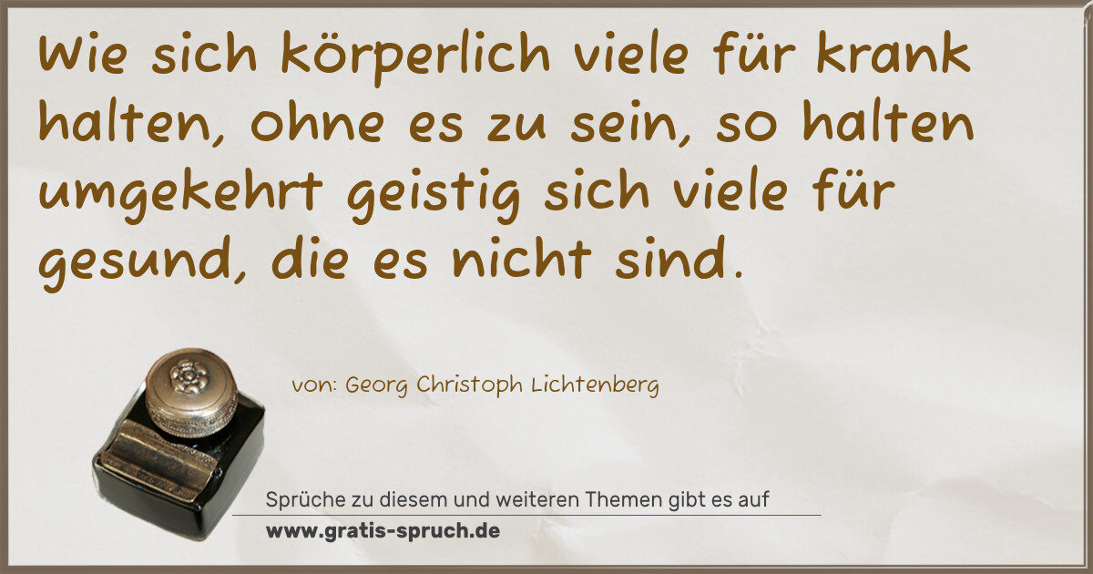 Wie sich körperlich viele für krank halten, ohne es zu sein, so halten umgekehrt geistig sich viele für gesund, die es nicht sind.