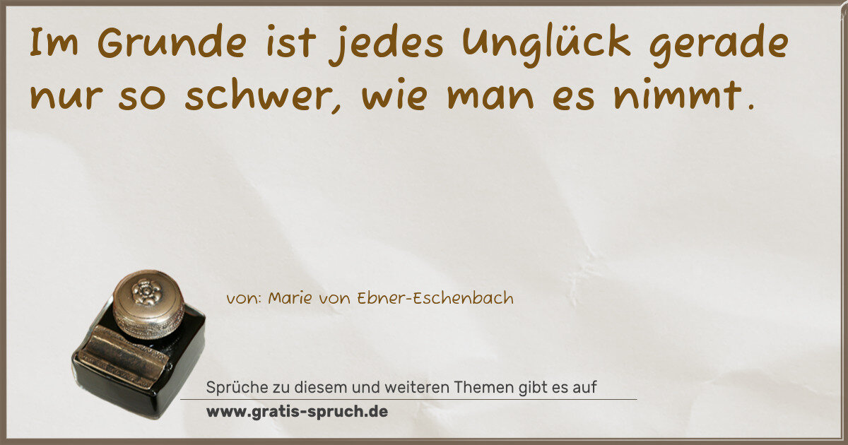 Im Grunde ist jedes Unglück gerade nur so schwer, wie man es nimmt.