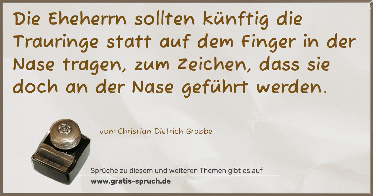 Die Eheherrn sollten künftig die Trauringe statt auf dem Finger in der Nase tragen, zum Zeichen, dass sie doch an der Nase geführt werden.