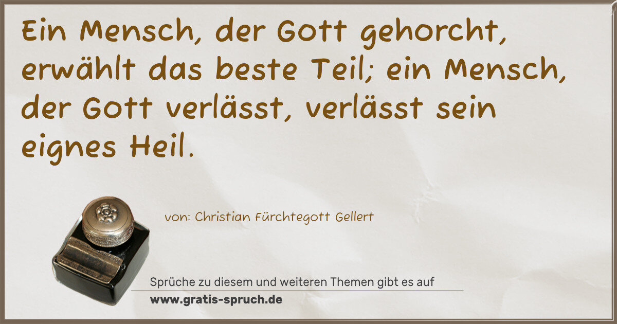 Ein Mensch, der Gott gehorcht, erwählt das beste Teil; ein Mensch, der Gott verlässt, verlässt sein eignes Heil.