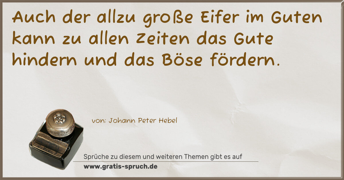 Auch der allzu große Eifer im Guten kann zu allen Zeiten das Gute hindern und das Böse fördern.