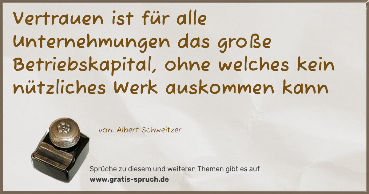 Vertrauen ist für alle Unternehmungen das große Betriebskapital, ohne welches kein nützliches Werk auskommen kann