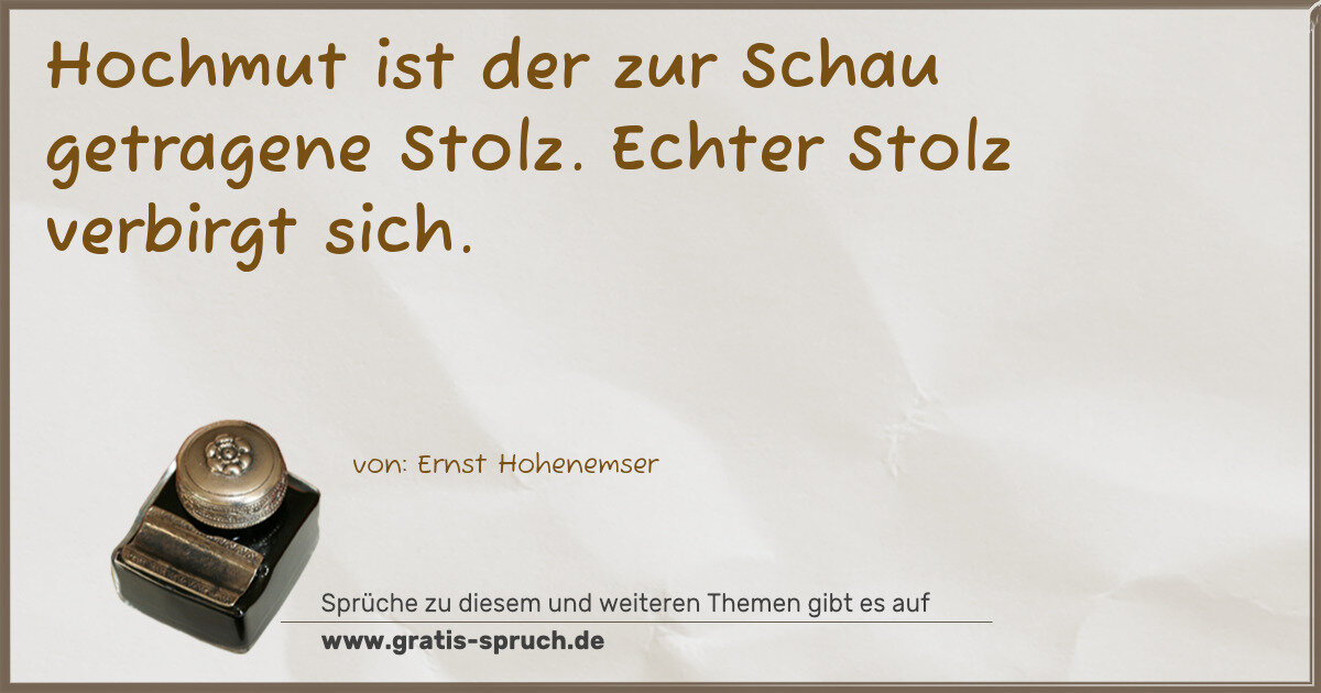 Hochmut ist der zur Schau getragene Stolz. Echter Stolz verbirgt sich.