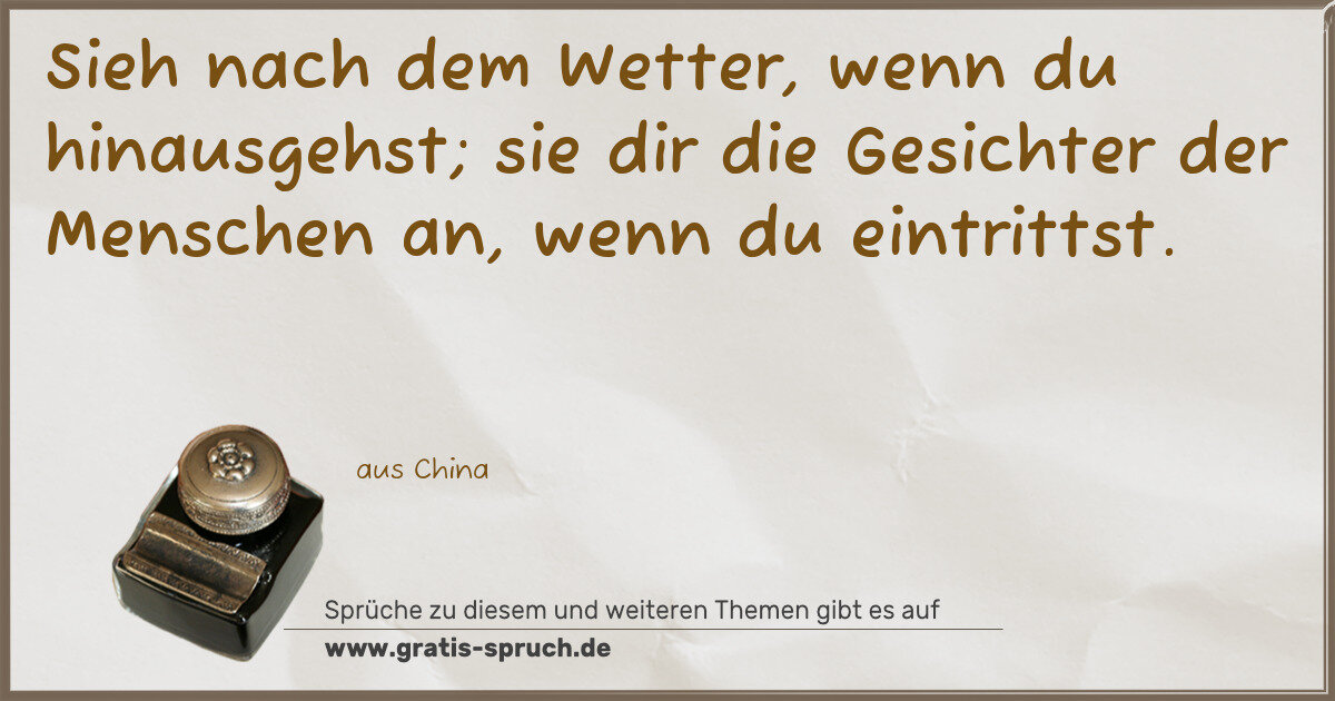 Sieh nach dem Wetter, wenn du hinausgehst; sie dir die Gesichter der Menschen an, wenn du eintrittst.