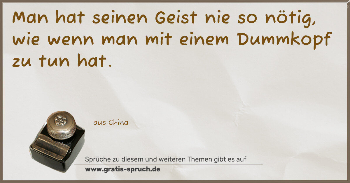 Man hat seinen Geist nie so nötig, wie wenn man mit einem Dummkopf zu tun hat.