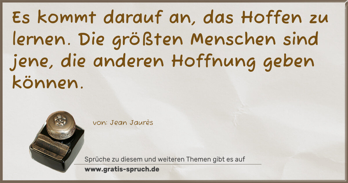 Es kommt darauf an, das Hoffen zu lernen. Die größten Menschen sind jene, die anderen Hoffnung geben können.