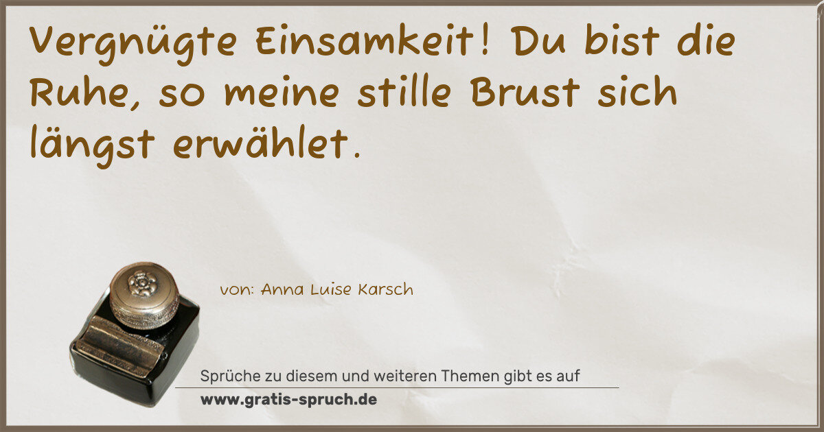 Vergnügte Einsamkeit! Du bist die Ruhe, so meine stille Brust sich längst erwählet.