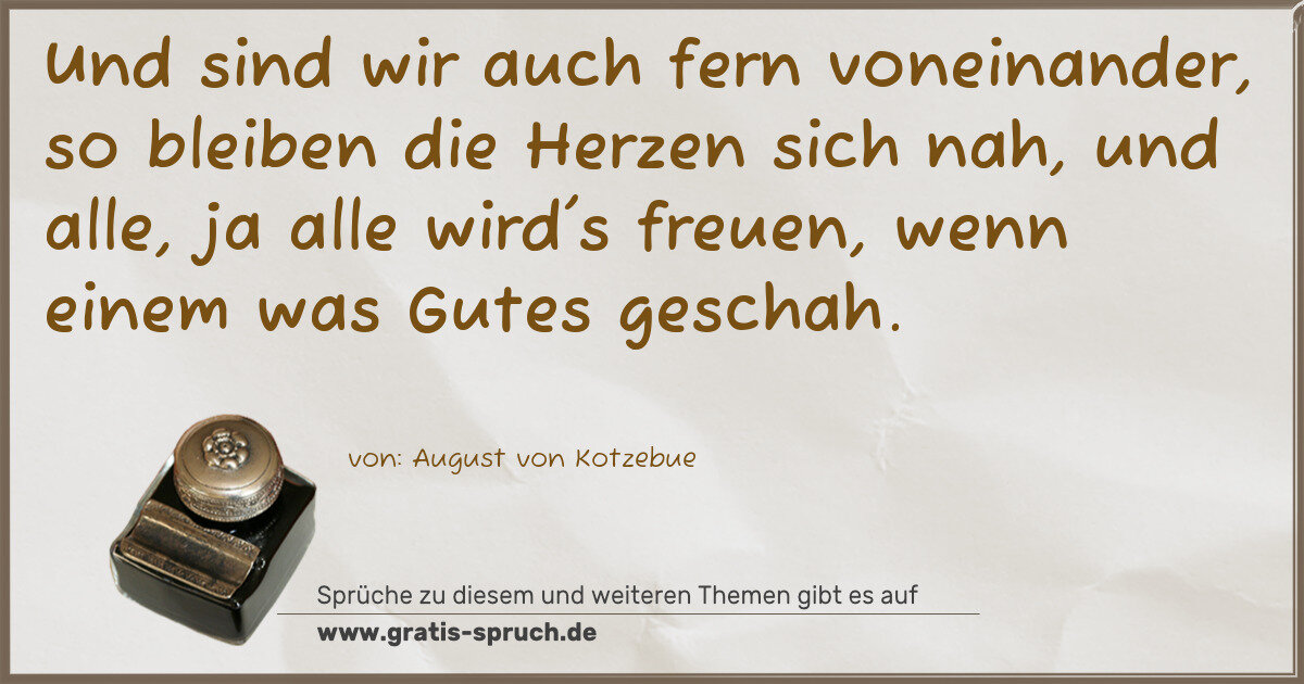 Und sind wir auch fern voneinander, so bleiben die Herzen sich nah, und alle, ja alle wird's freuen, wenn einem was Gutes geschah.