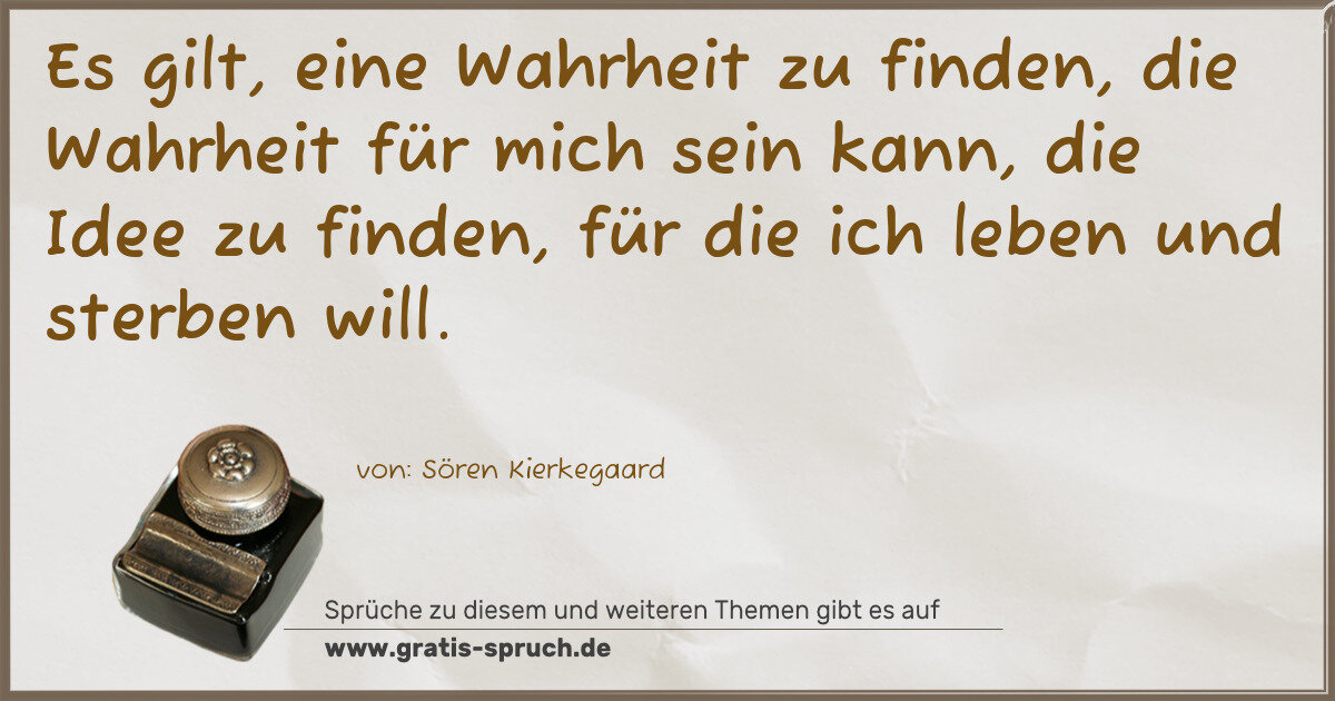 Es gilt, eine Wahrheit zu finden, die Wahrheit für mich sein kann, die Idee zu finden, für die ich leben und sterben will.