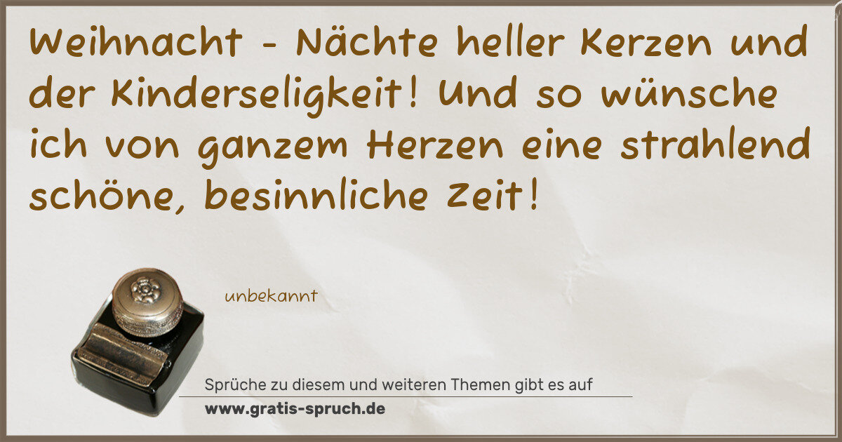 Weihnacht - Nächte heller Kerzen und der Kinderseligkeit! Und so wünsche ich von ganzem Herzen eine strahlend schöne, besinnliche Zeit!