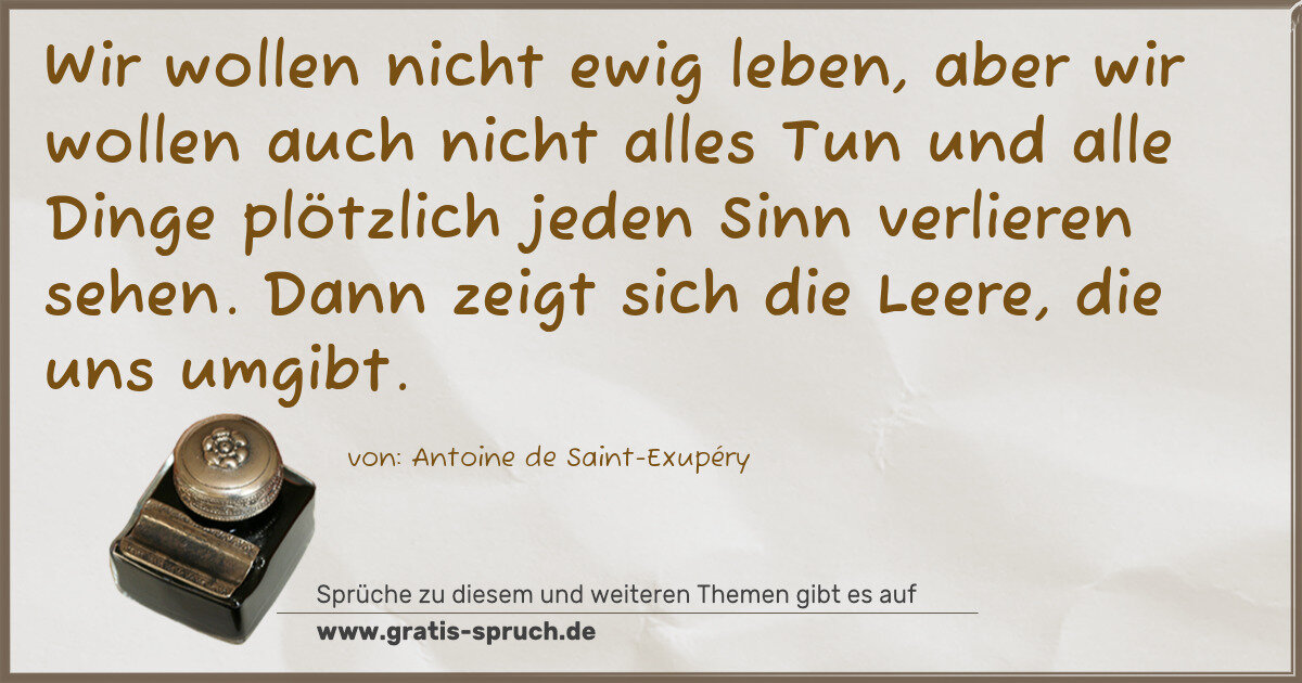 Wir wollen nicht ewig leben, aber wir wollen auch nicht alles Tun und alle Dinge plötzlich jeden Sinn verlieren sehen. Dann zeigt sich die Leere, die uns umgibt.