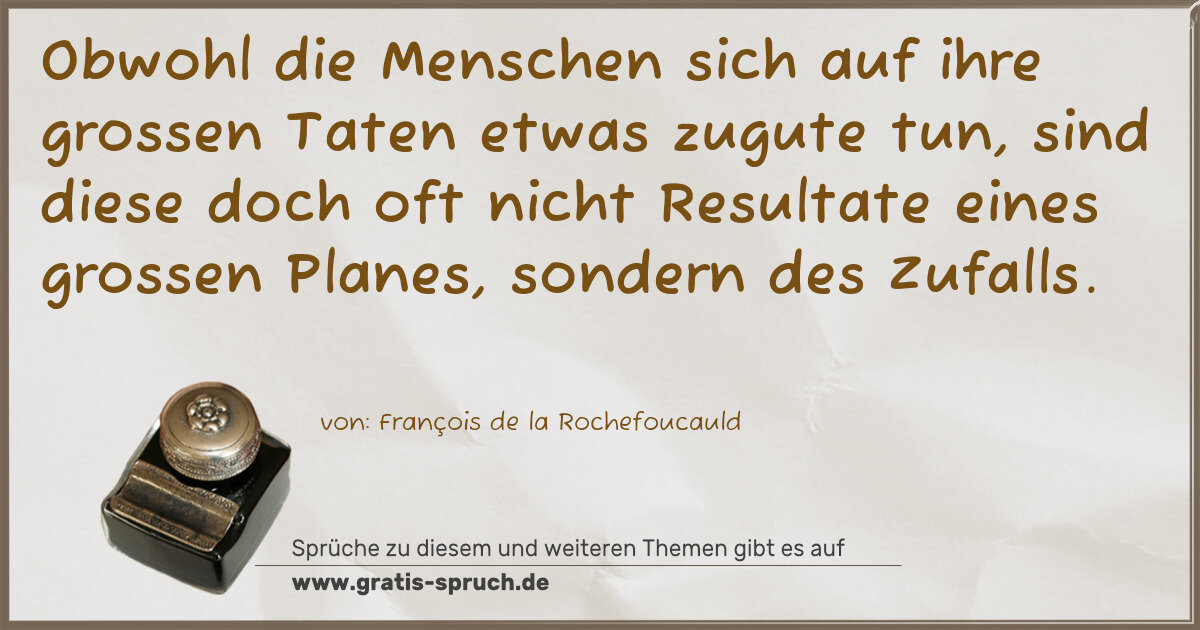 Obwohl die Menschen sich auf ihre grossen Taten etwas zugute tun, sind diese doch oft nicht Resultate eines grossen Planes, sondern des Zufalls.