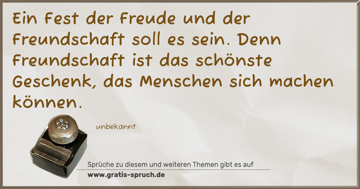 Ein Fest der Freude und der Freundschaft soll es sein. Denn Freundschaft ist das schönste Geschenk, das Menschen sich machen können.