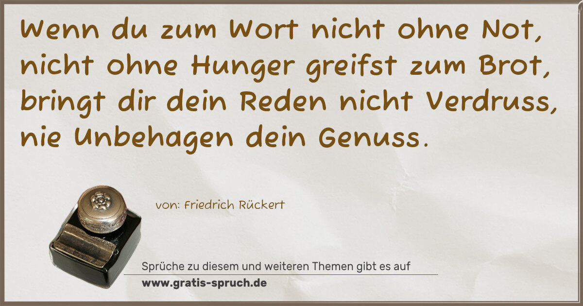 Wenn du zum Wort nicht ohne Not, nicht ohne Hunger greifst zum Brot, bringt dir dein Reden nicht Verdruss, nie Unbehagen dein Genuss.