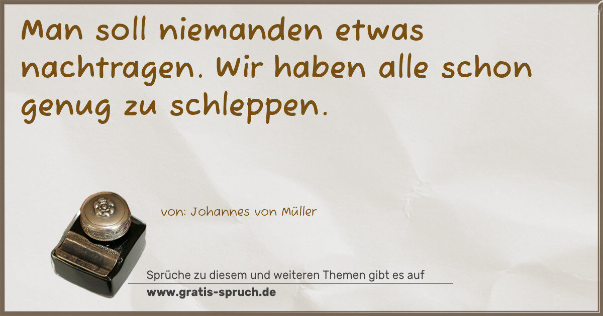 Man soll niemanden etwas nachtragen. Wir haben alle schon genug zu schleppen.