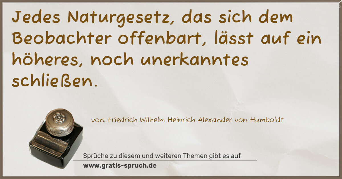 Jedes Naturgesetz, das sich dem Beobachter offenbart, lässt auf ein höheres, noch unerkanntes schließen.