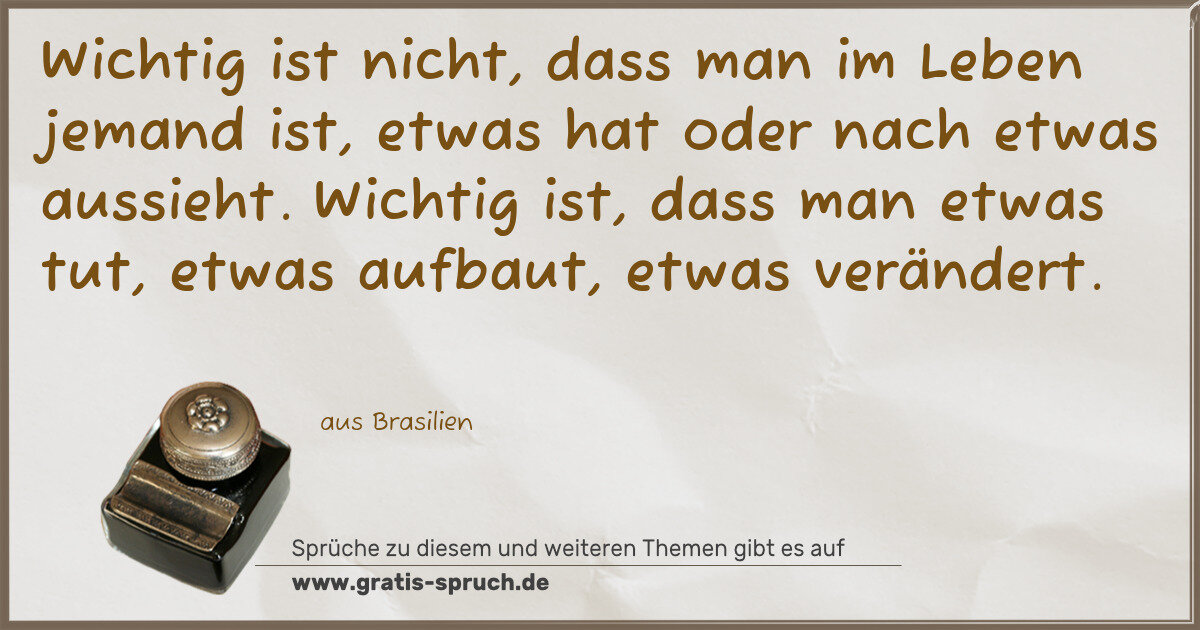 Wichtig ist nicht, dass man im Leben jemand ist, etwas hat oder nach etwas aussieht. Wichtig ist, dass man etwas tut, etwas aufbaut, etwas verändert.