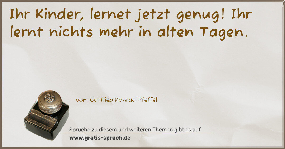 Ihr Kinder, lernet jetzt genug! Ihr lernt nichts mehr in alten Tagen.
