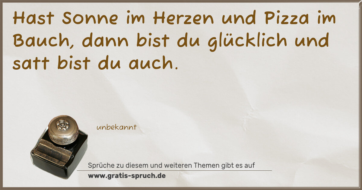 Hast Sonne im Herzen und Pizza im Bauch, dann bist du glücklich und satt bist du auch.