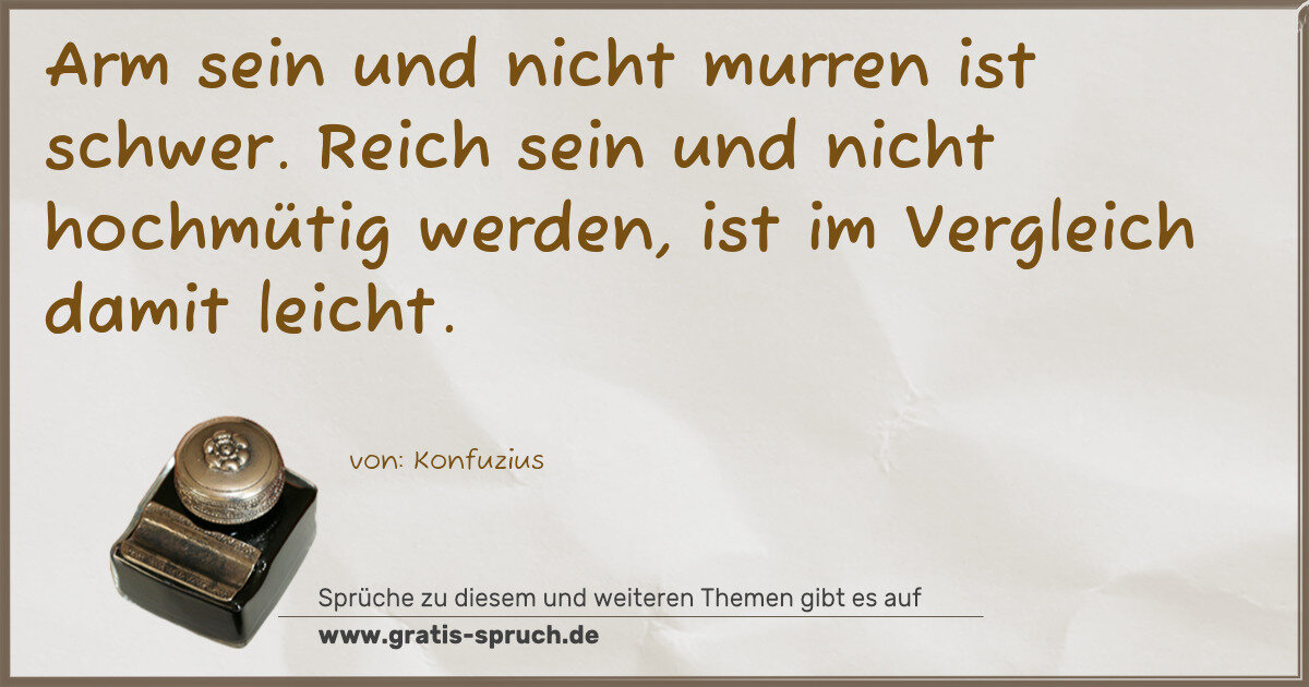 Arm sein und nicht murren ist schwer. Reich sein und nicht hochmütig werden, ist im Vergleich damit leicht.