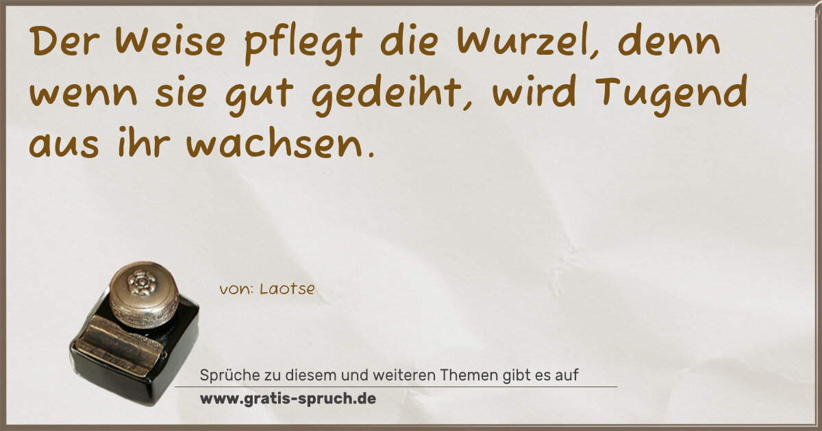 Der Weise pflegt die Wurzel, denn wenn sie gut gedeiht, wird Tugend aus ihr wachsen.