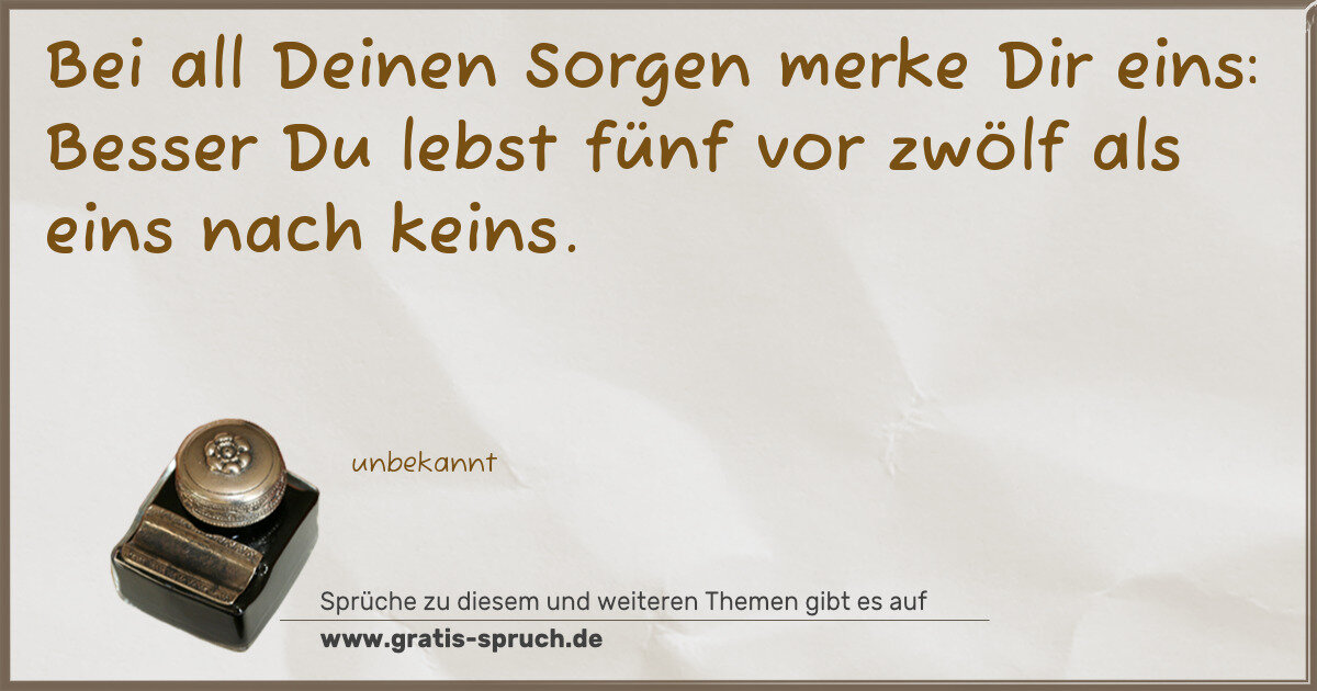 Bei all Deinen Sorgen merke Dir eins: Besser Du lebst fünf vor zwölf als eins nach keins.