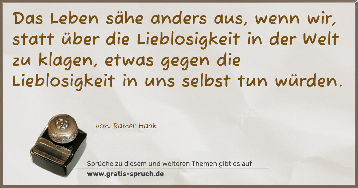 Das Leben sähe anders aus, wenn wir, statt über die Lieblosigkeit in der Welt zu klagen, etwas gegen die Lieblosigkeit in uns selbst tun würden.