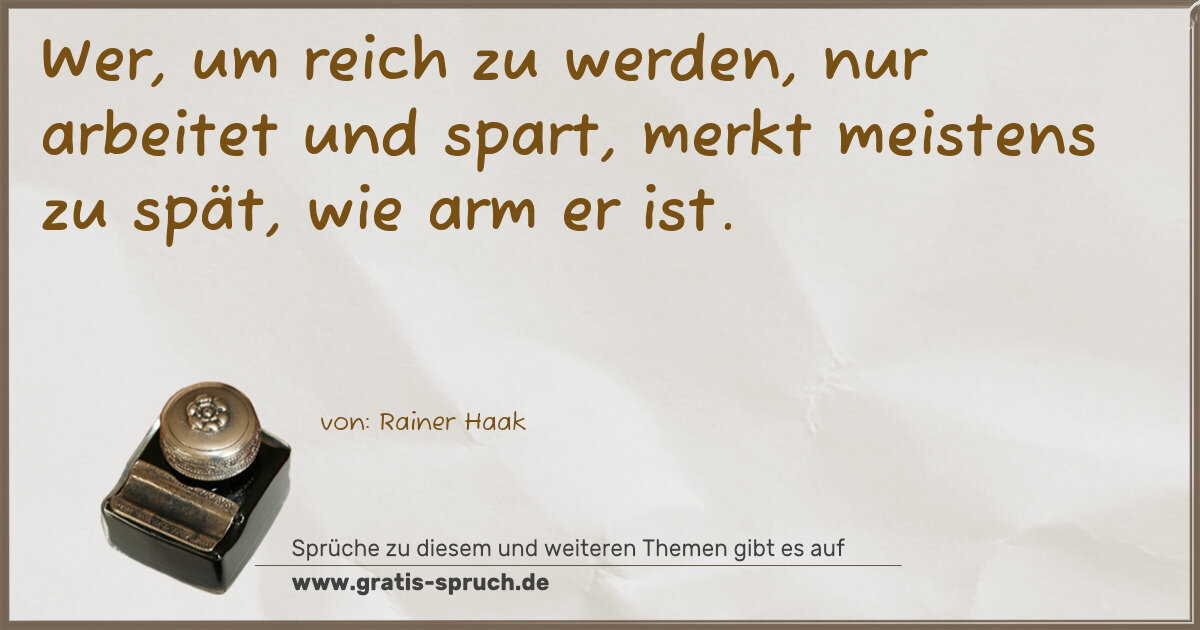 Wer, um reich zu werden, nur arbeitet und spart, merkt meistens zu spät, wie arm er ist.