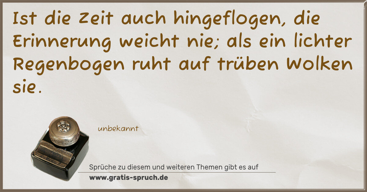 Ist die Zeit auch hingeflogen, die Erinnerung weicht nie; als ein lichter Regenbogen ruht auf trüben Wolken sie.