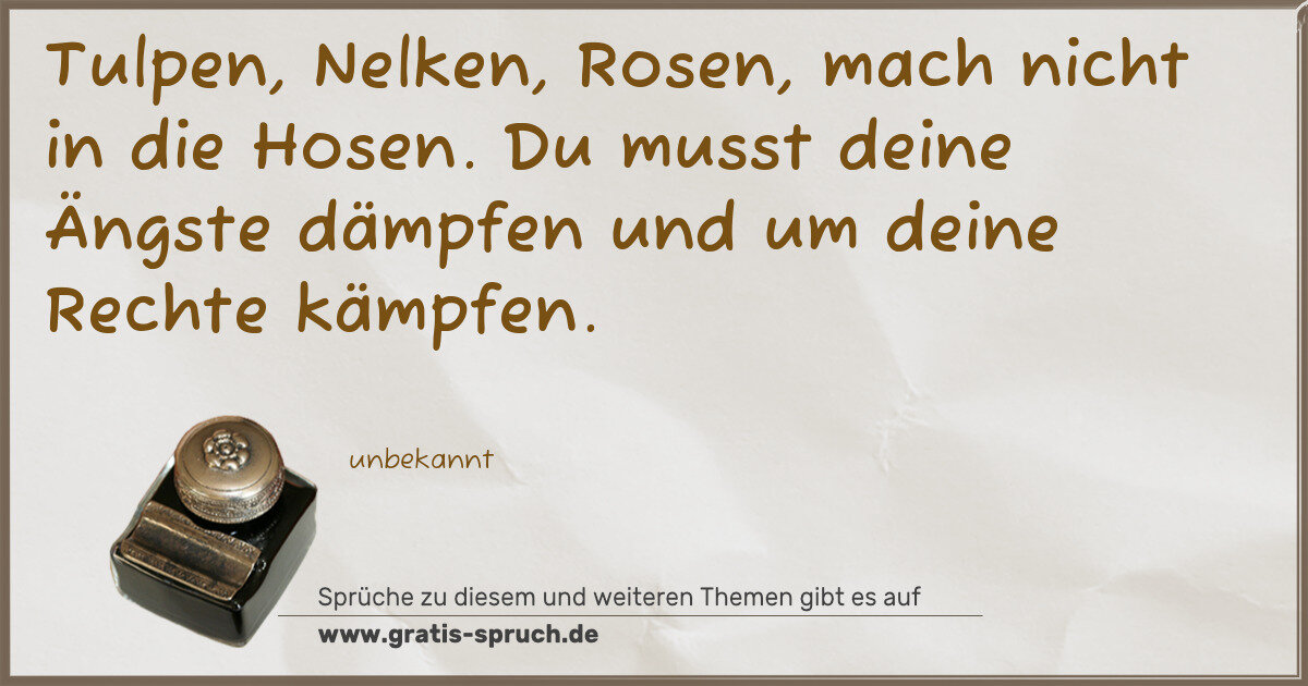 Tulpen, Nelken, Rosen, mach nicht in die Hosen. Du musst deine Ängste dämpfen und um deine Rechte kämpfen.