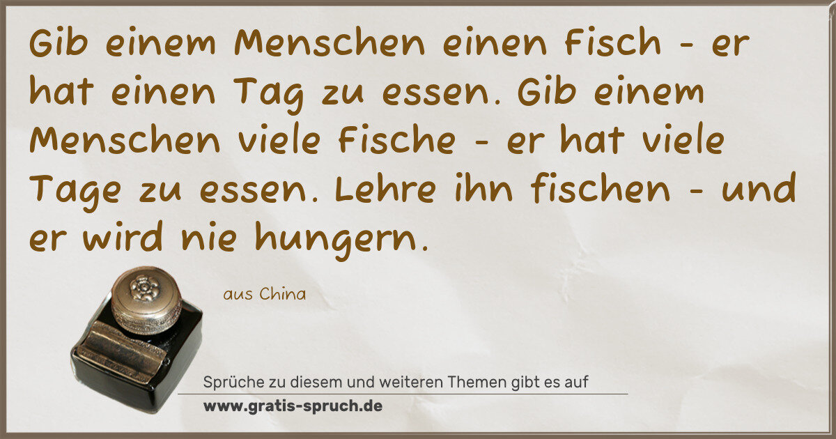 Gib einem Menschen einen Fisch - er hat einen Tag zu essen. Gib einem Menschen viele Fische - er hat viele Tage zu essen. Lehre ihn fischen - und er wird nie hungern.