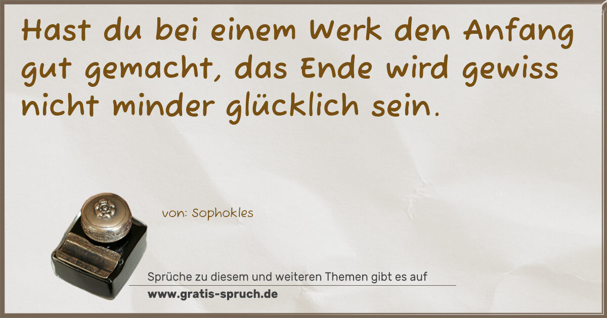 Hast du bei einem Werk den Anfang gut gemacht, das Ende wird gewiss nicht minder glücklich sein.